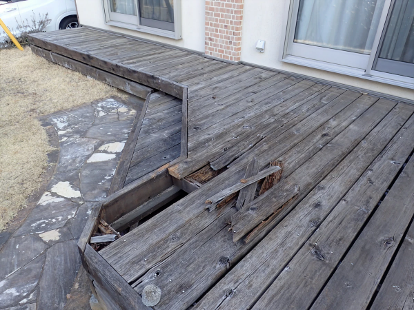 古くなったウッドデッキを作り替えます。