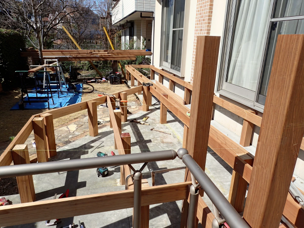 デッキ部分を支える構造材をしっかりと作っていきます。